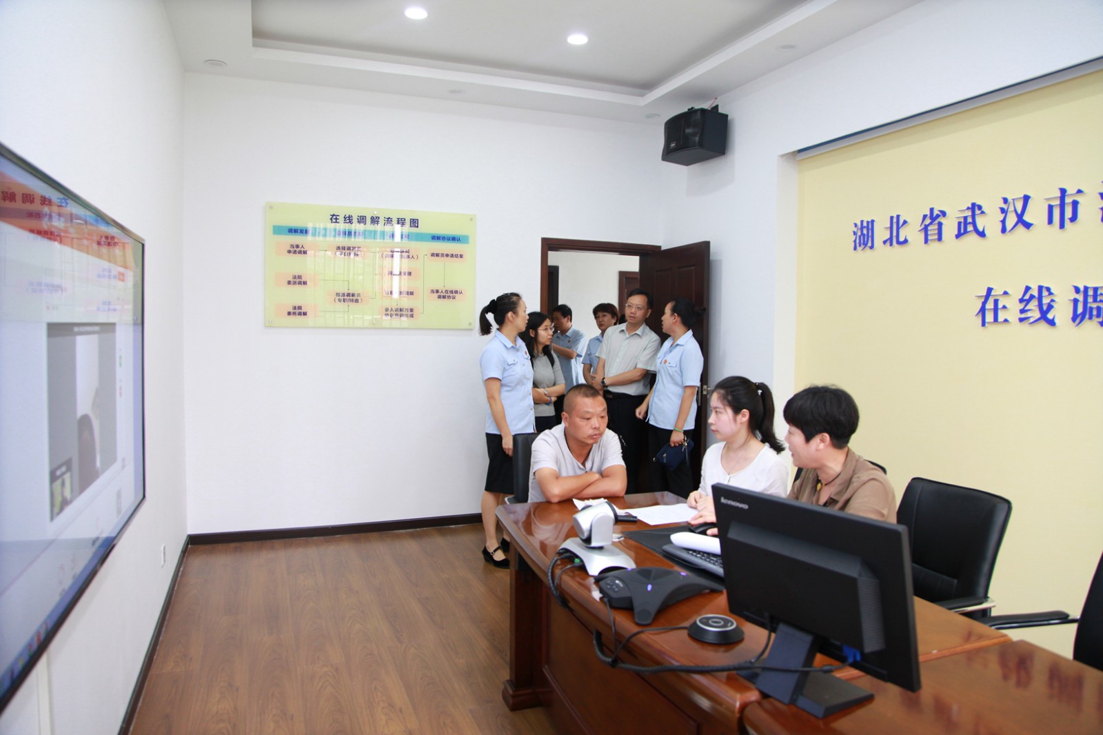 9月27日上午,最高法院审判长宁晟、法官助理柳珊等督查组一行2人,莅临我院督查指导涉诉信访安保维稳与诉讼服务工作。省法院立案一庭副庭长邵远红、市法院立案一庭副庭长余斌及我院党组成员、副院长李乐、审判委员会专职委员、诉讼服务中心主任黎维超等领导陪同视察。