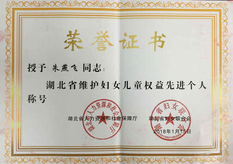 在“三•八”国际劳动妇女节来临之际,我院朱燕飞法官被湖北省妇女联合会、湖北省人力资源和社会保障厅共同授予“湖北省维护妇女儿童权益先进个人”称号。3月3日,在武汉市“三八维权周”活动启动仪式上,朱燕飞法官作为先进个人代表宣读了妇女儿童维权倡议书。